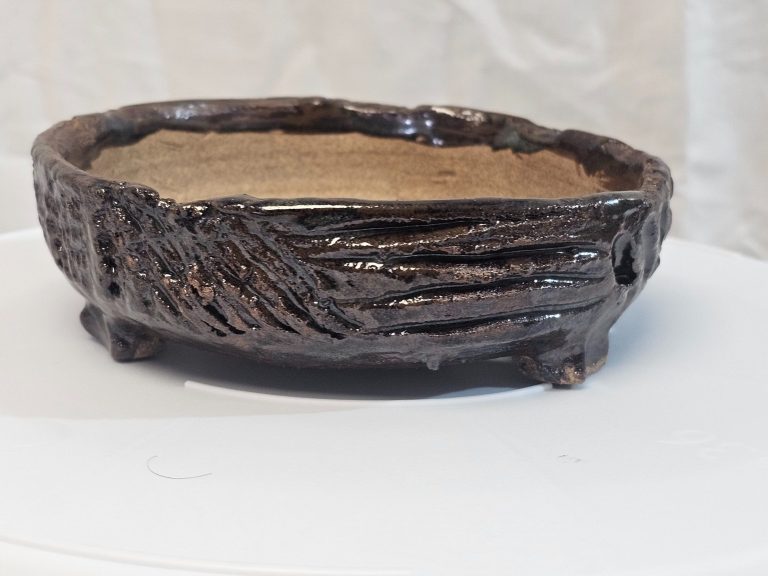 Maceta realizada en arcilla beige refractaria de chamota fina cocida a 1280o C y esmaltada en un esmalte de creación propia.
